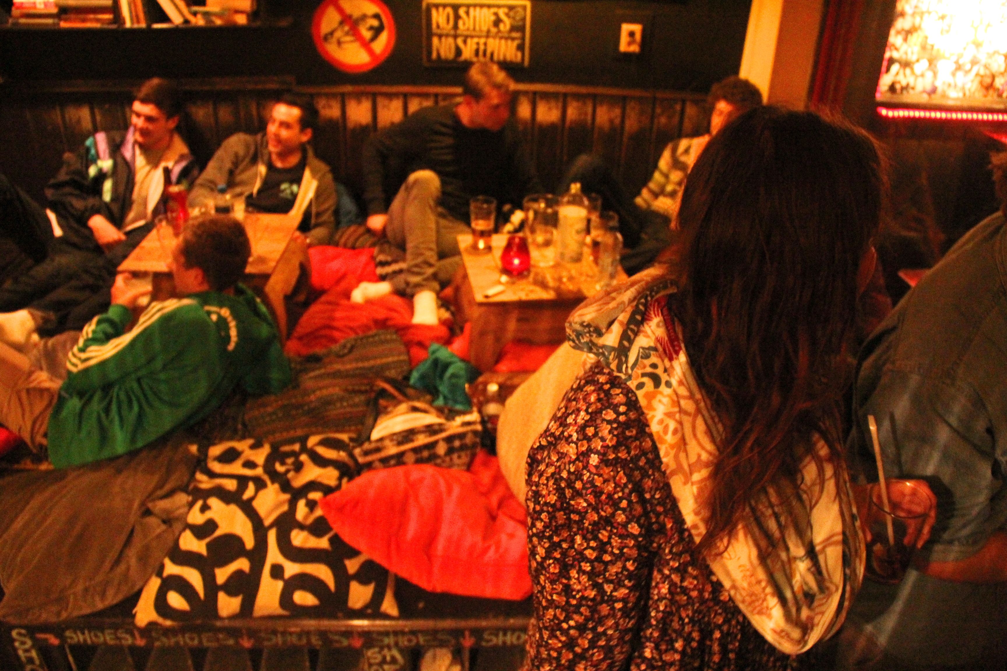 There is a lounge that people interact and sit with eachother on cushions with shoes off.  Interaction of youth and discussing travel with other travelers is what’s most rewarding about traveling.