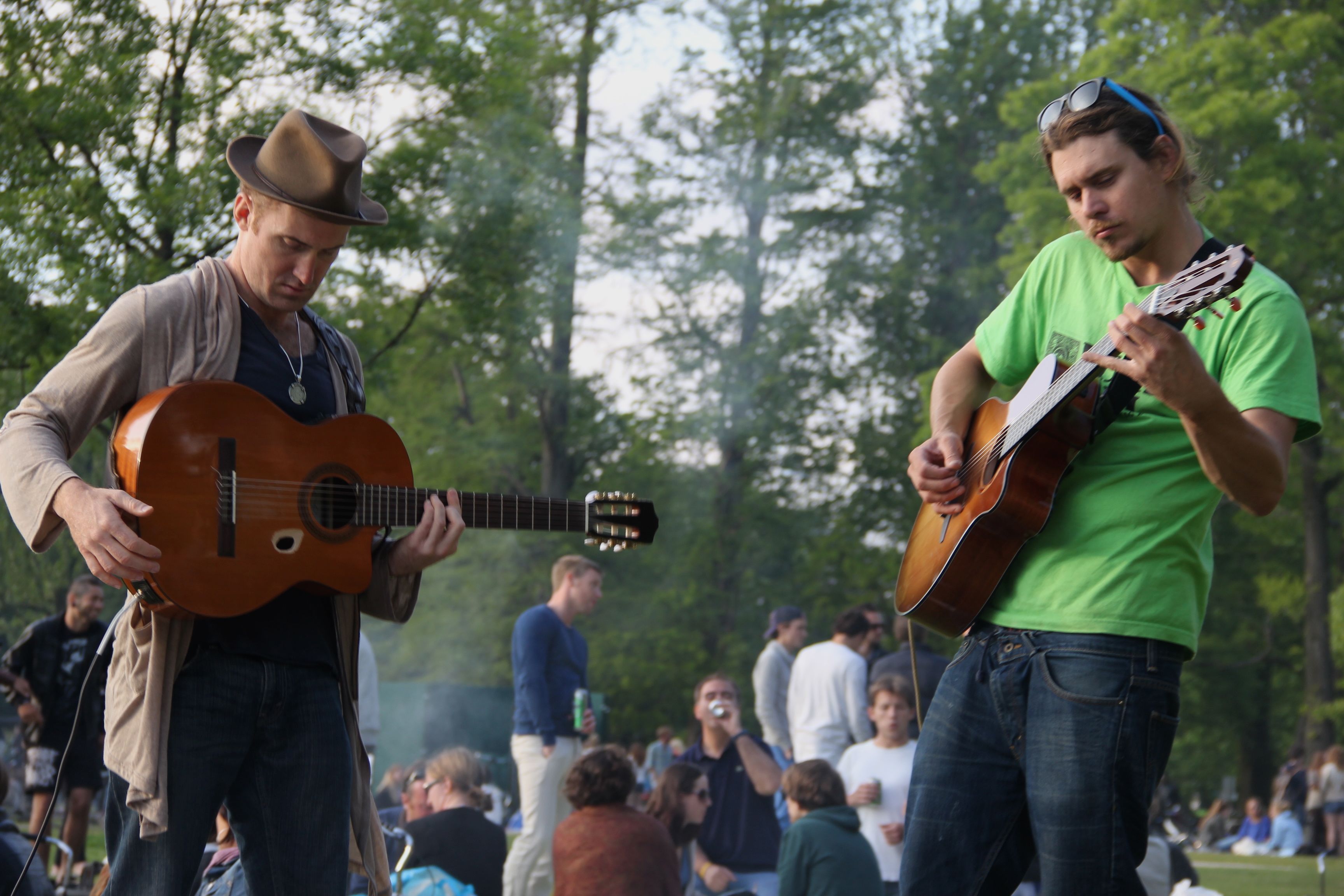 The cops have been tolerant of us plugging into our battery powered amplifiers and blasting our music in the park.  So far so good.  Today I realized I was right where I needed to be – jamming music in the green grass with the sun on my face.