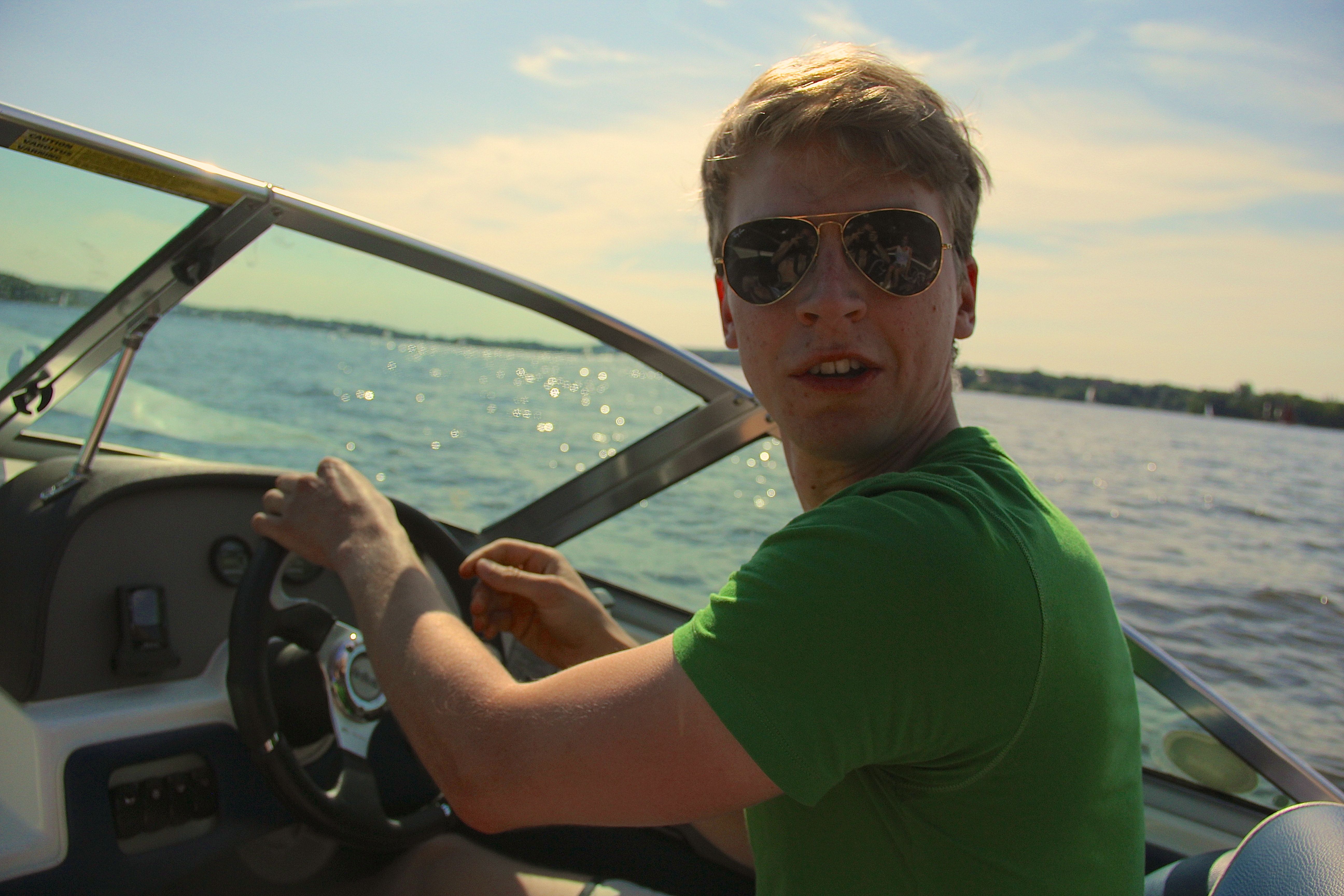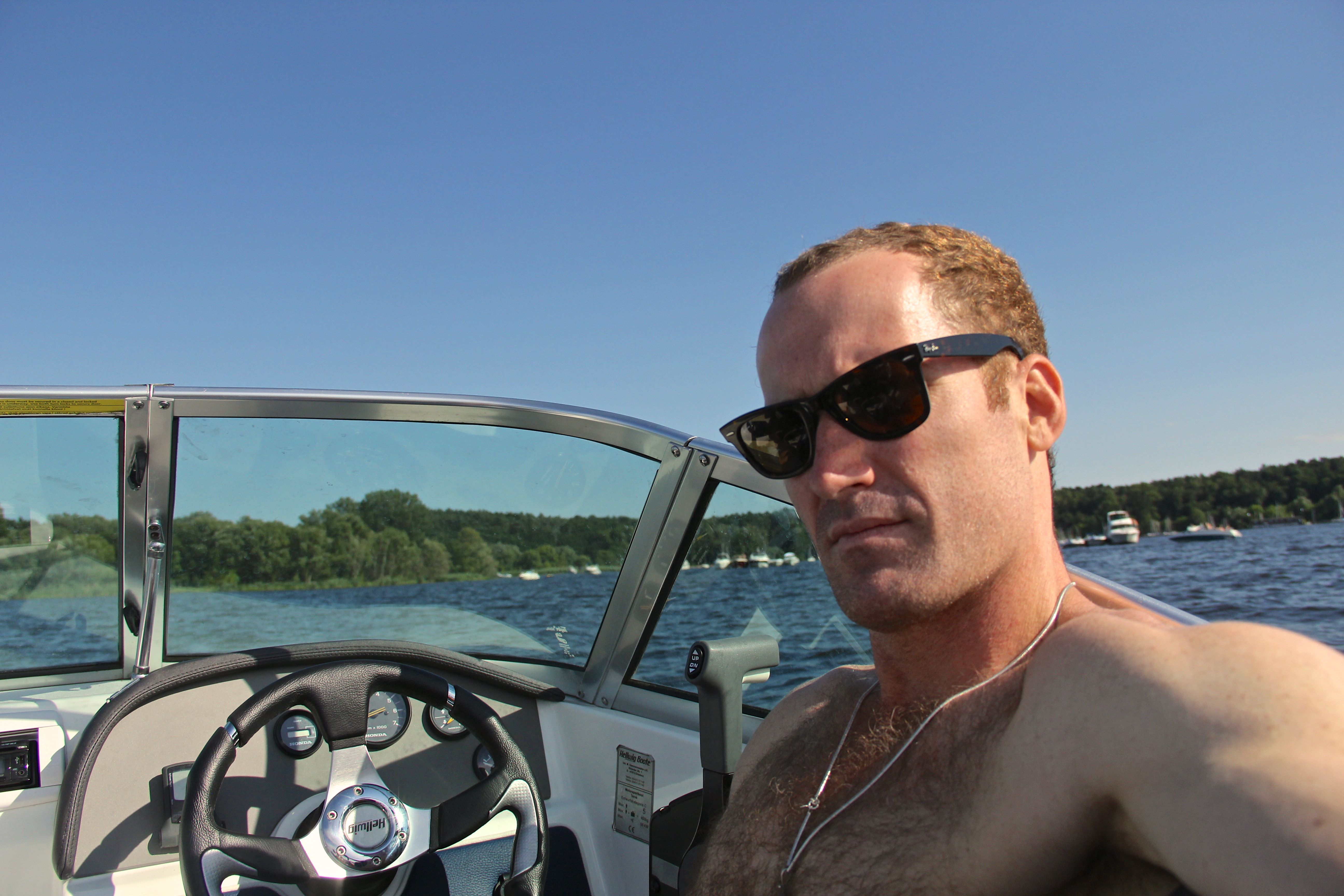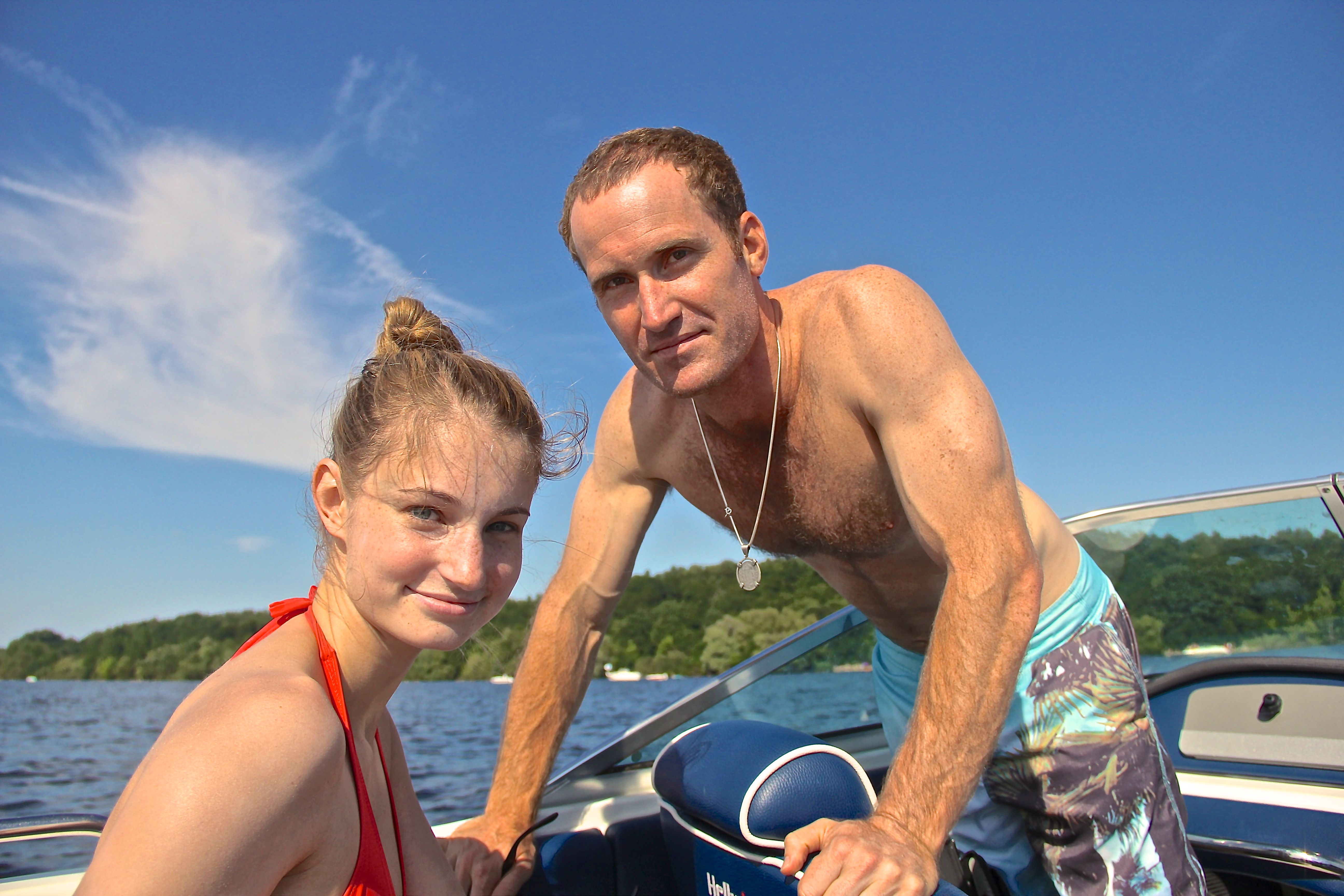 Her good friend, Jochen, has a beautiful house on the lake with a cool boat and jet ski.