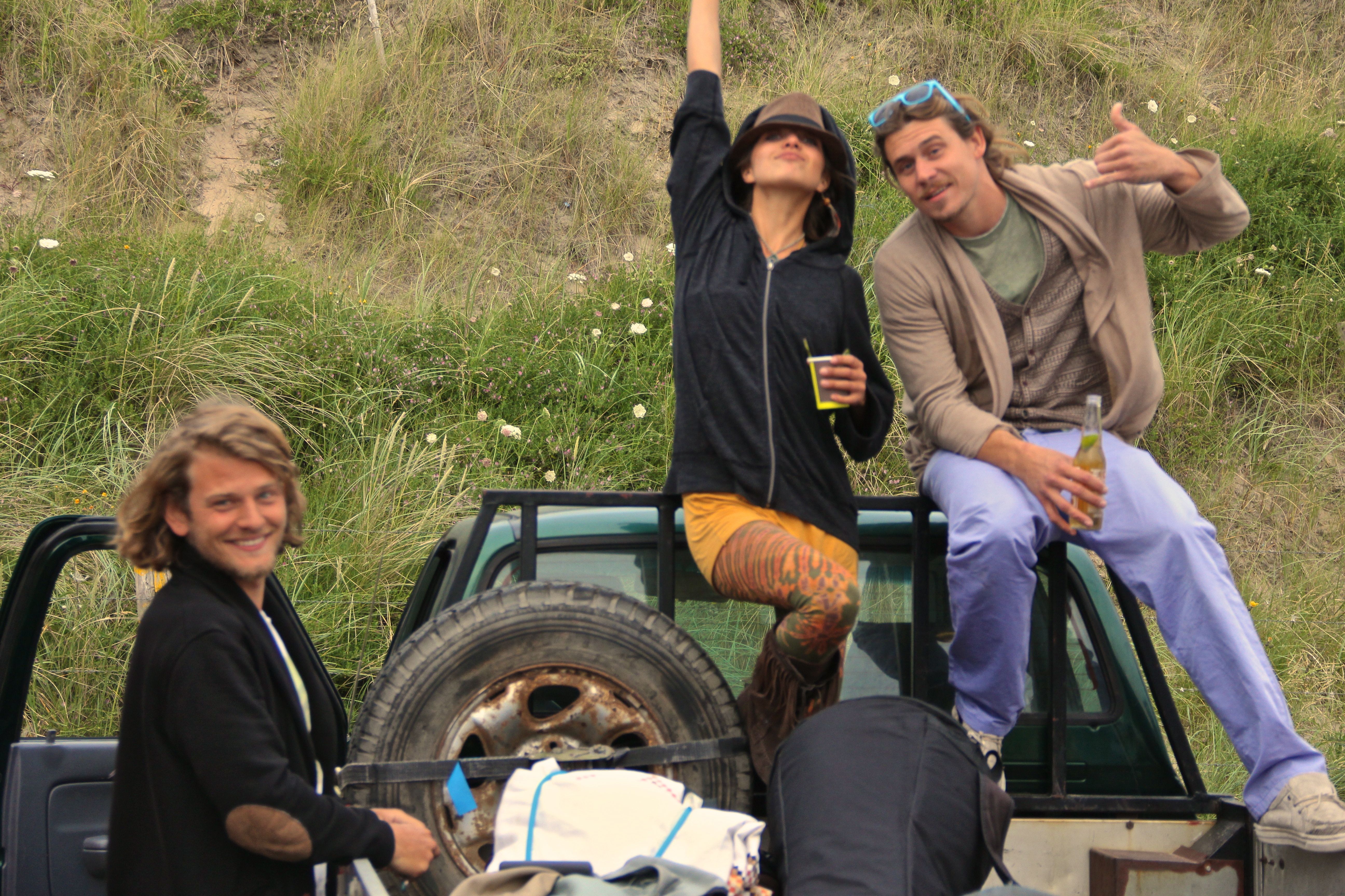 Our favorite person ever, Paul, drove us along the beach in his pickup truck providing first class access to our gig.