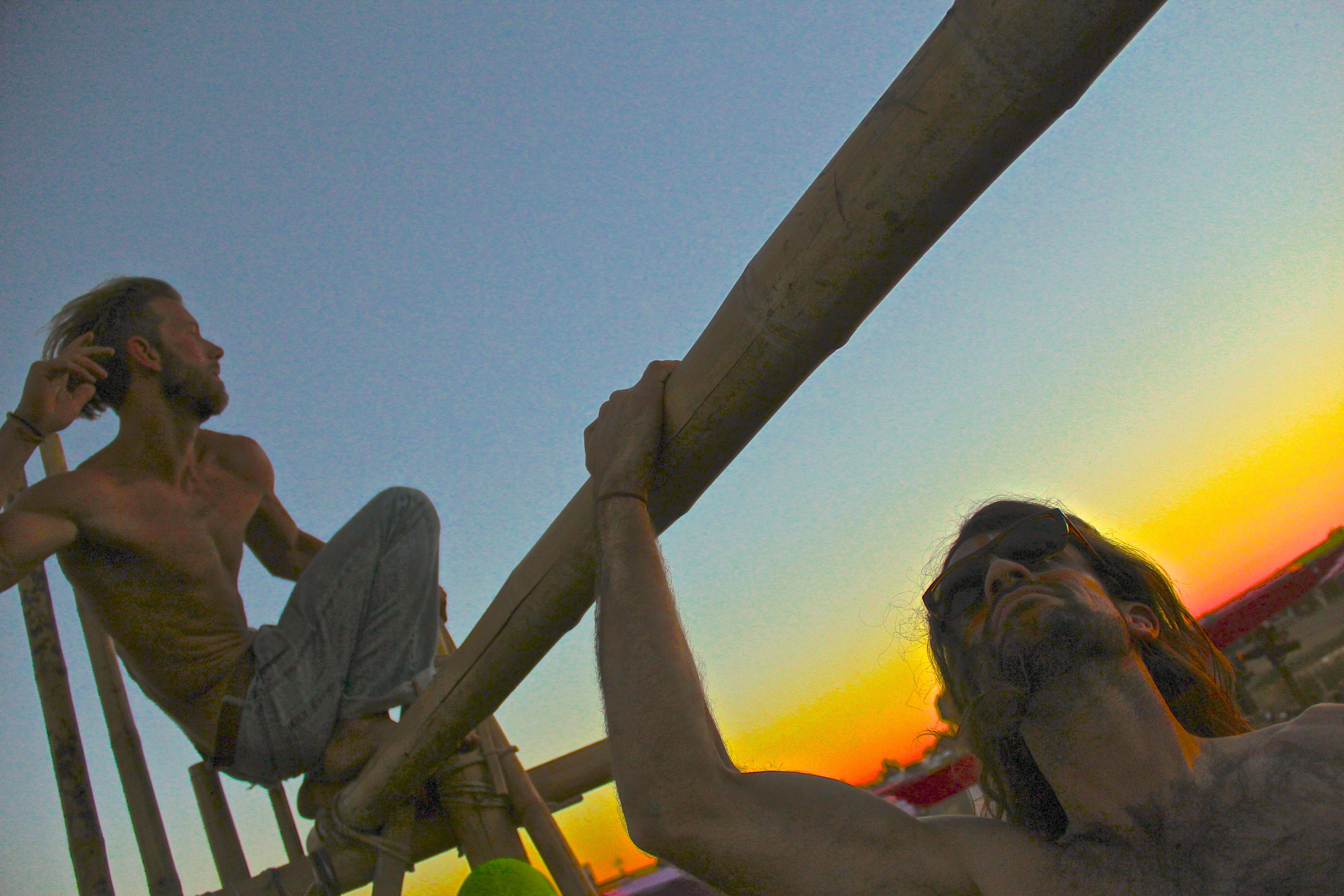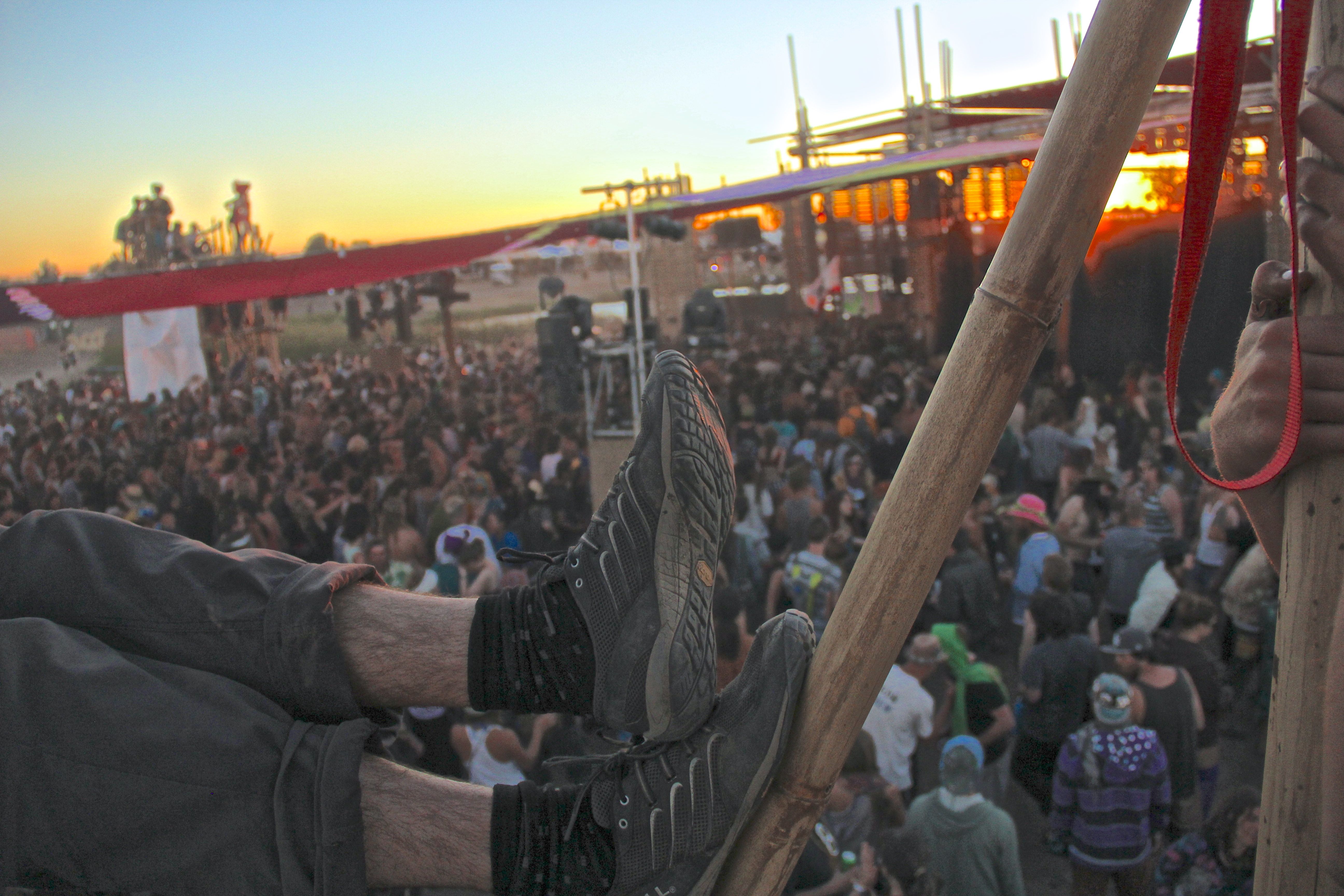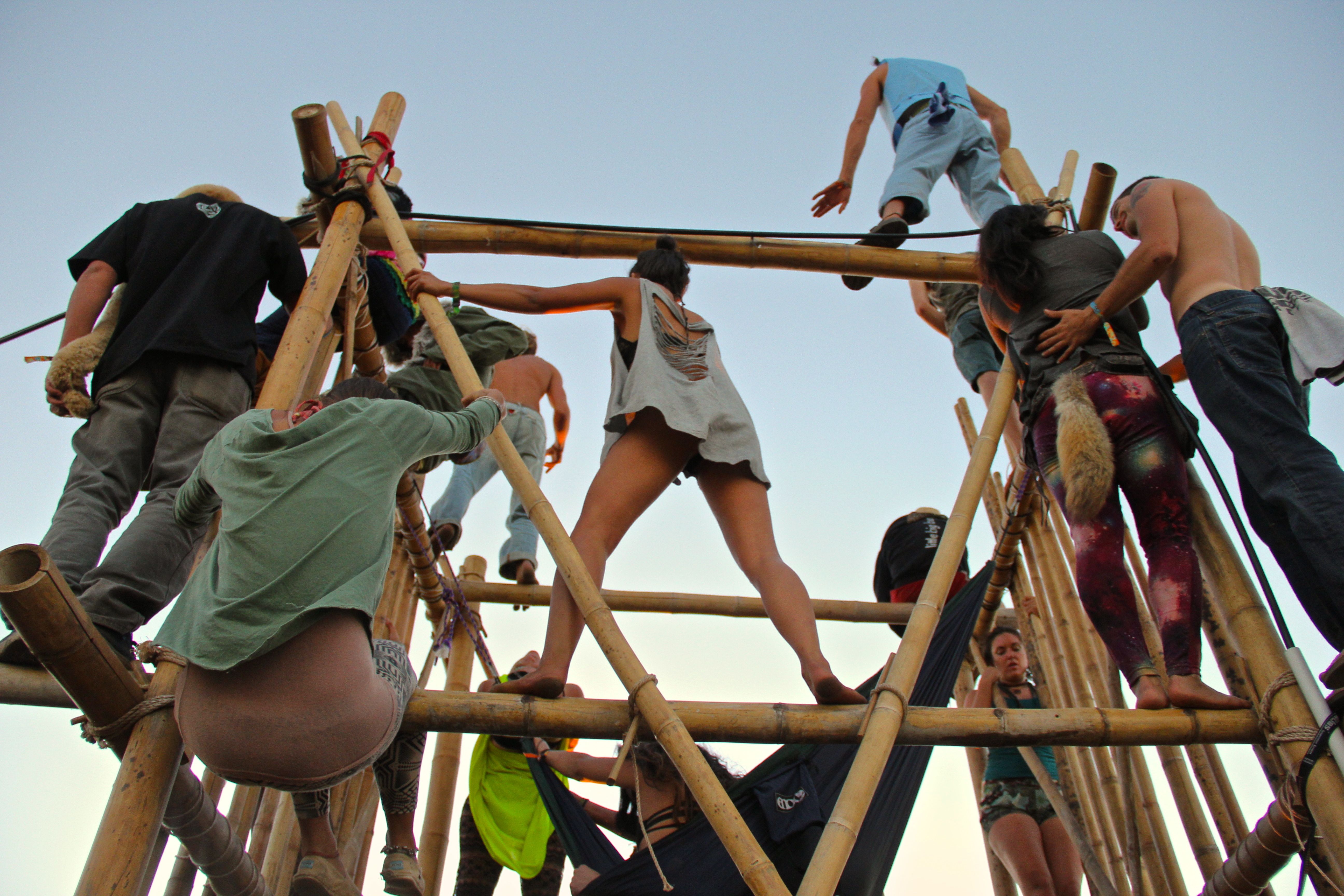 The hill on the Cove proved to be a large gathering place and there was non-stop dancing on the bamboo towers. Climbing up the towers gave me an amazing bird’s eye view of the craziness.
