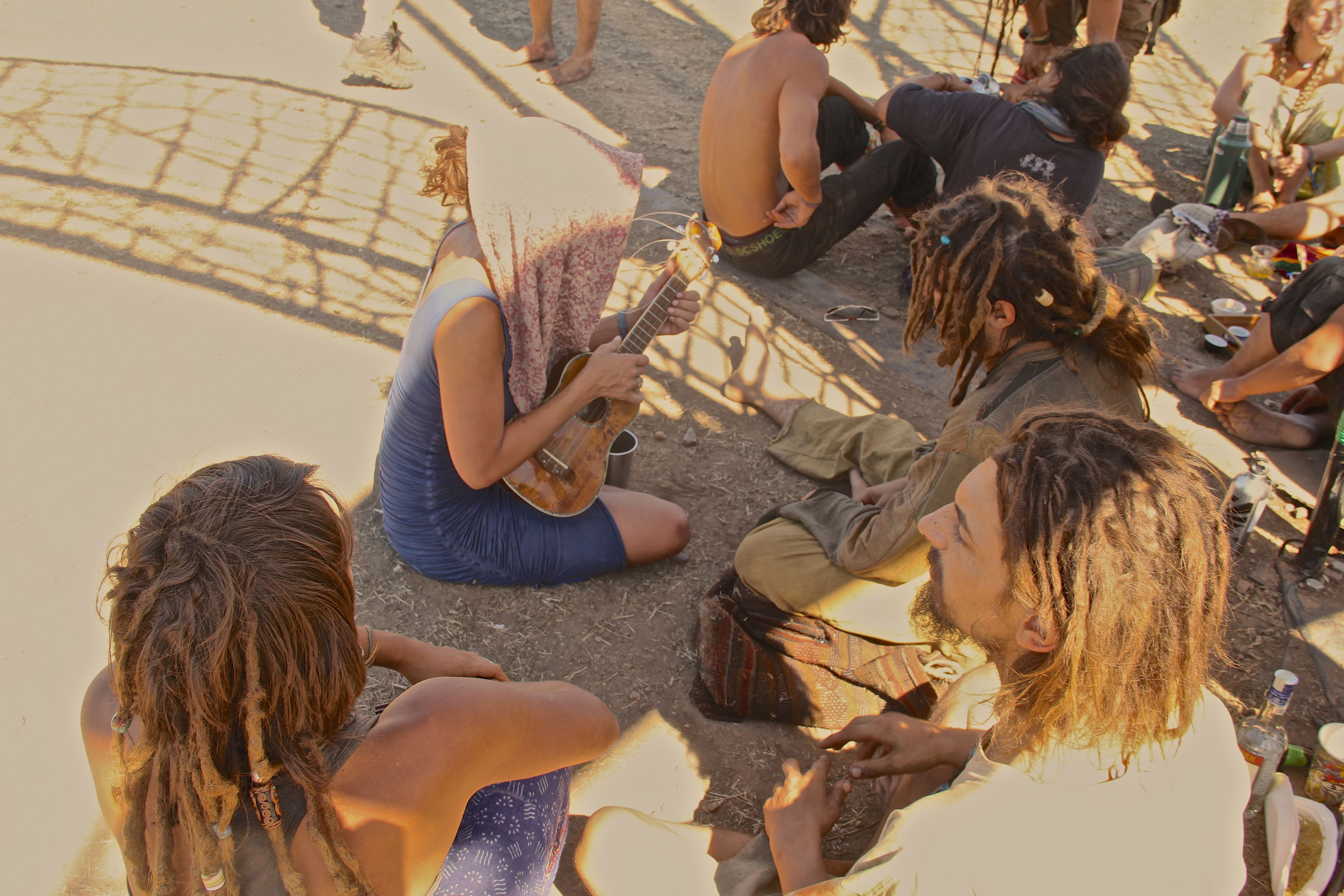 I was ecstatic to see the band, Ecstatic Union, wandering barefoot past the food kiosks while jamming their songs, with their posse singing along. Their girlfriends were handing out free copies of their latest Album titled Sundog while they walked along the field singing their songs. http://www.ecstaticunionmusic.com