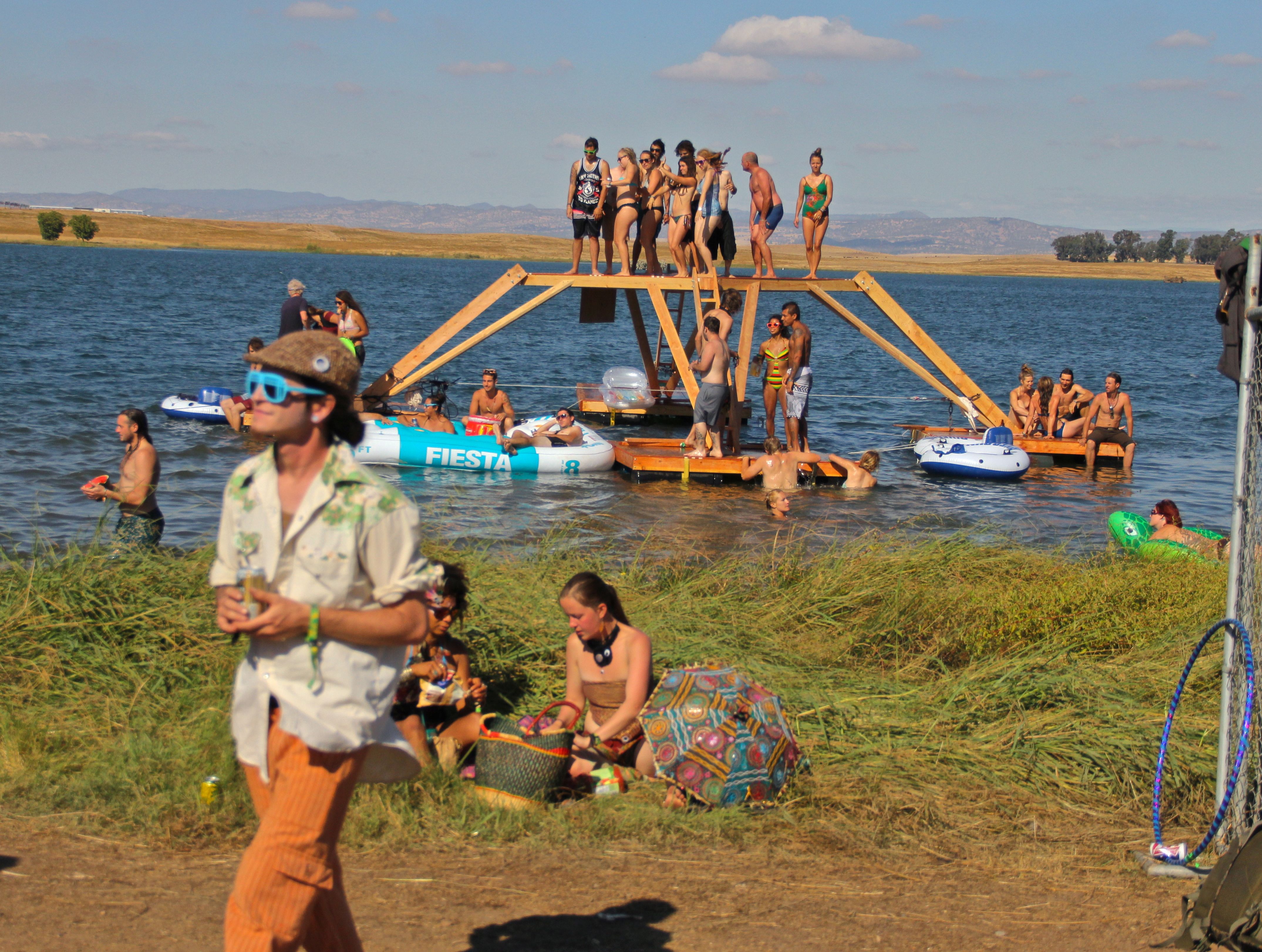 Water is one of the most undervalued commodities on this planet and it is one of the most important draws for me to come to Symbiosis Gathering. At Burning Man I find myself in swirling dust storms and I cannot dip into fresh water and swim from venue to venue, listening to music as I backstroke in the fresh water, and then dance next to uninhibited people after a long swim, pulsating my wet body to fresh rhythms with clean mud swirling between my toes.