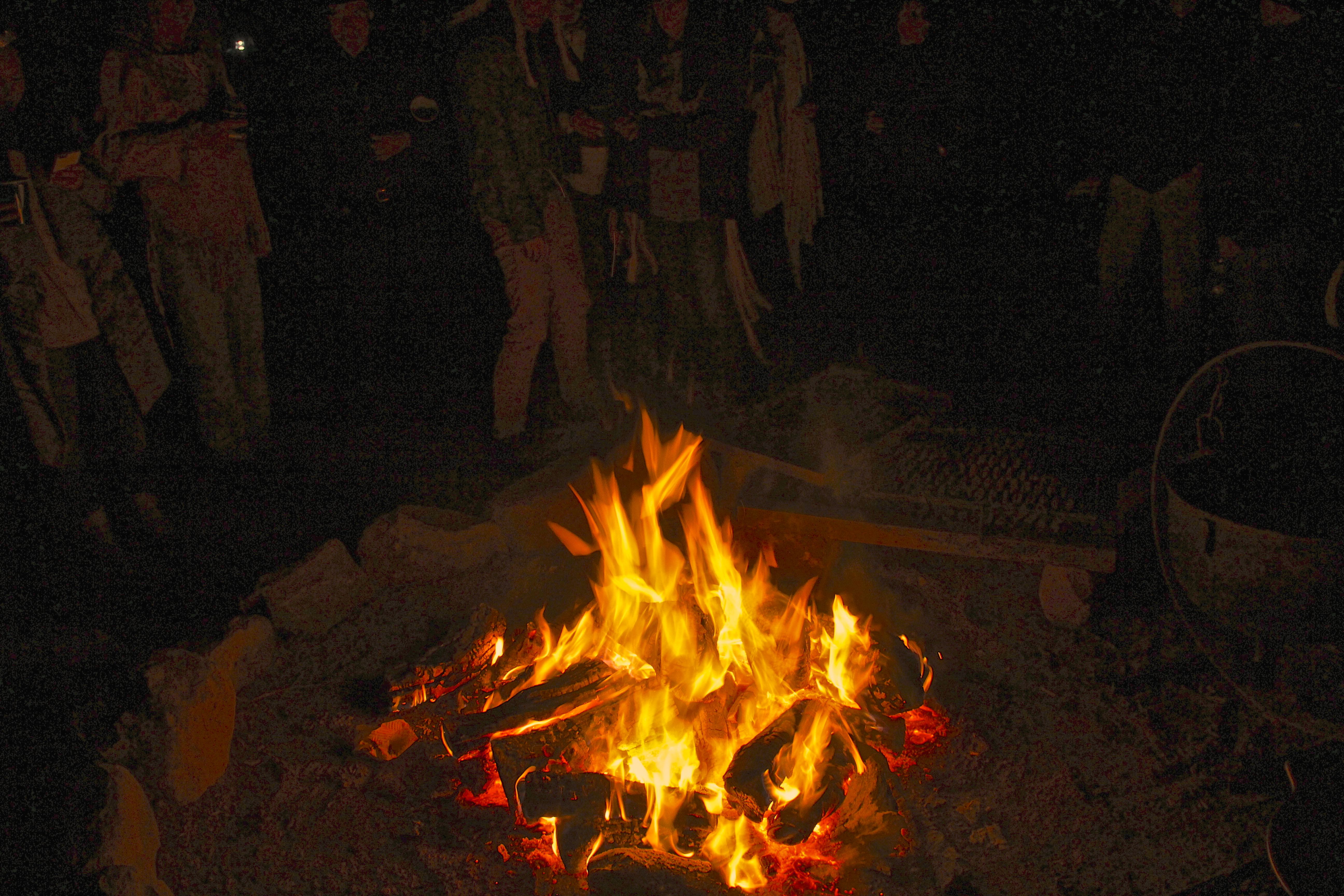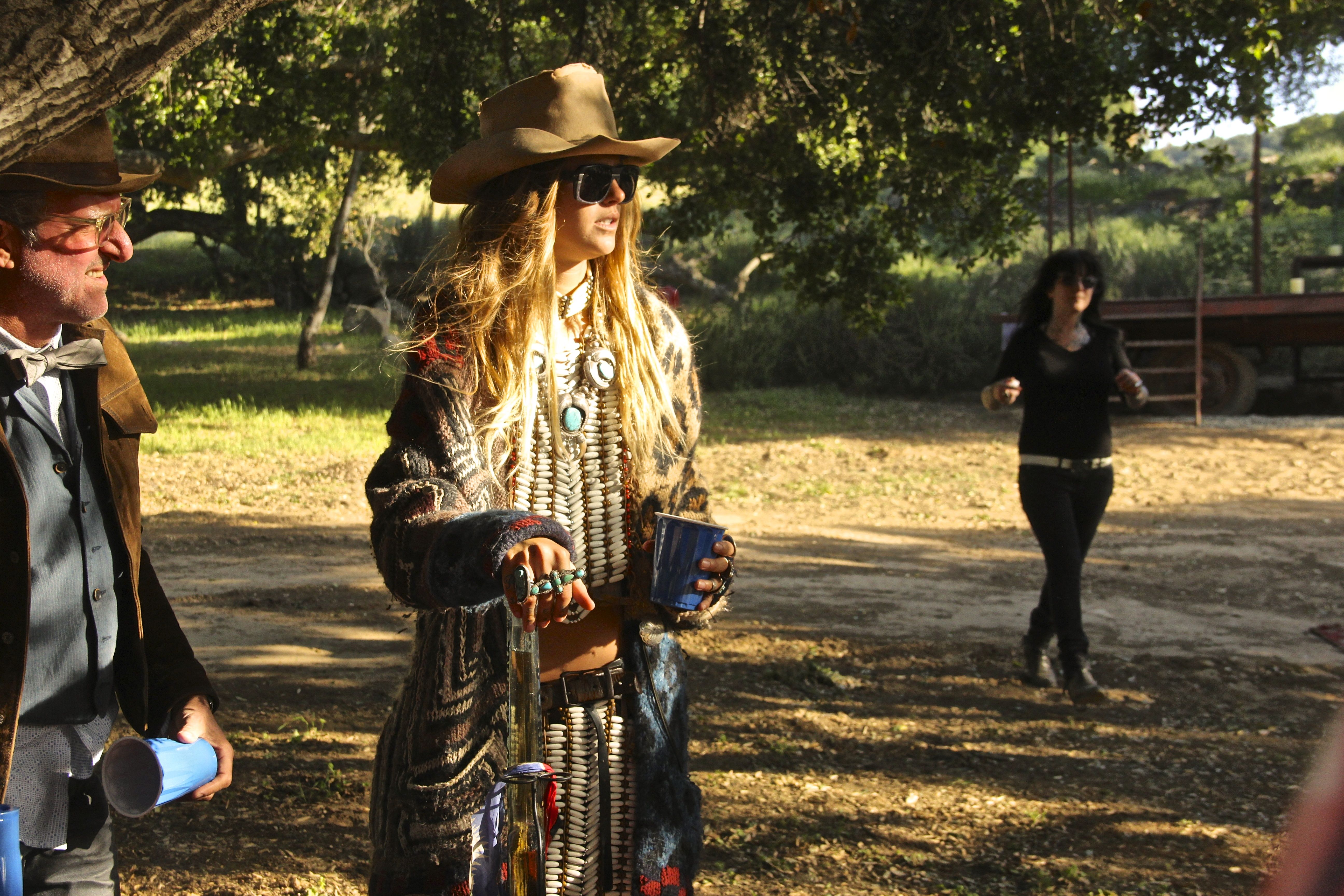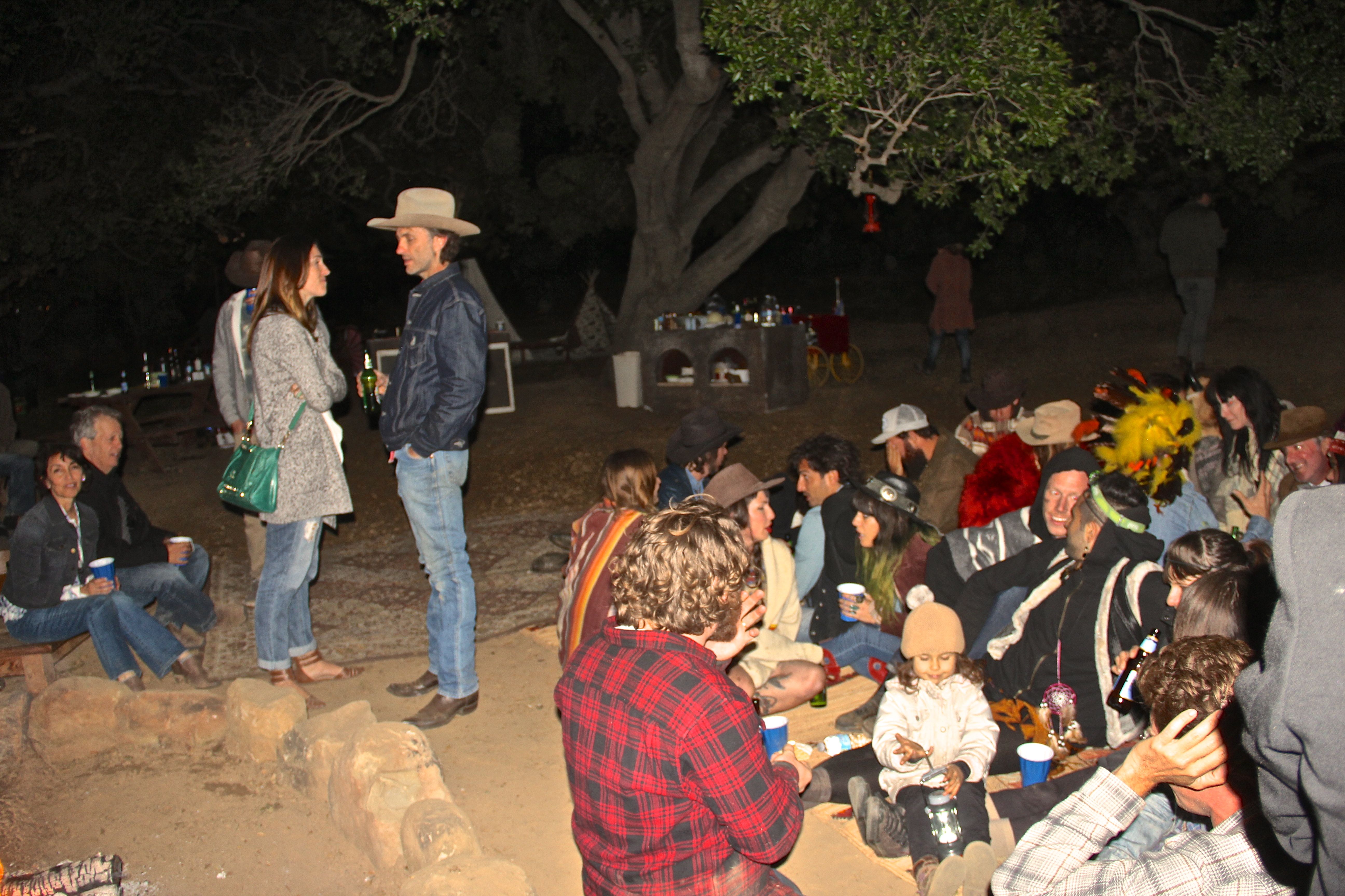 Cowboys and Indians swarmed around the fire in their hottest tribal attire and then got cozy and bundled around Arielle’s red-feathered coat.