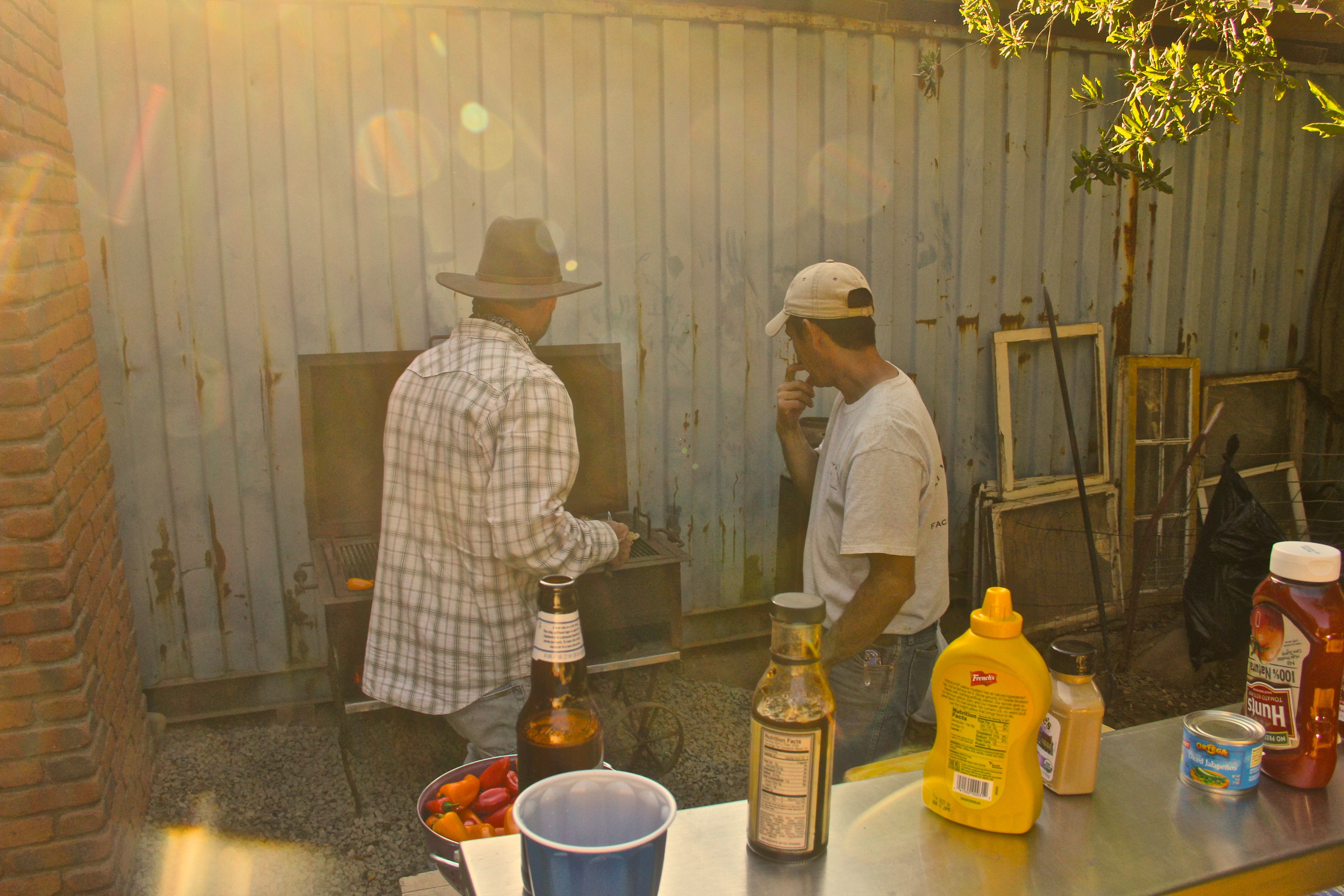 Real cowboy-Brad cooked cream cheese stuffed peppers wrapped with bacon and some other tasty meals as well.