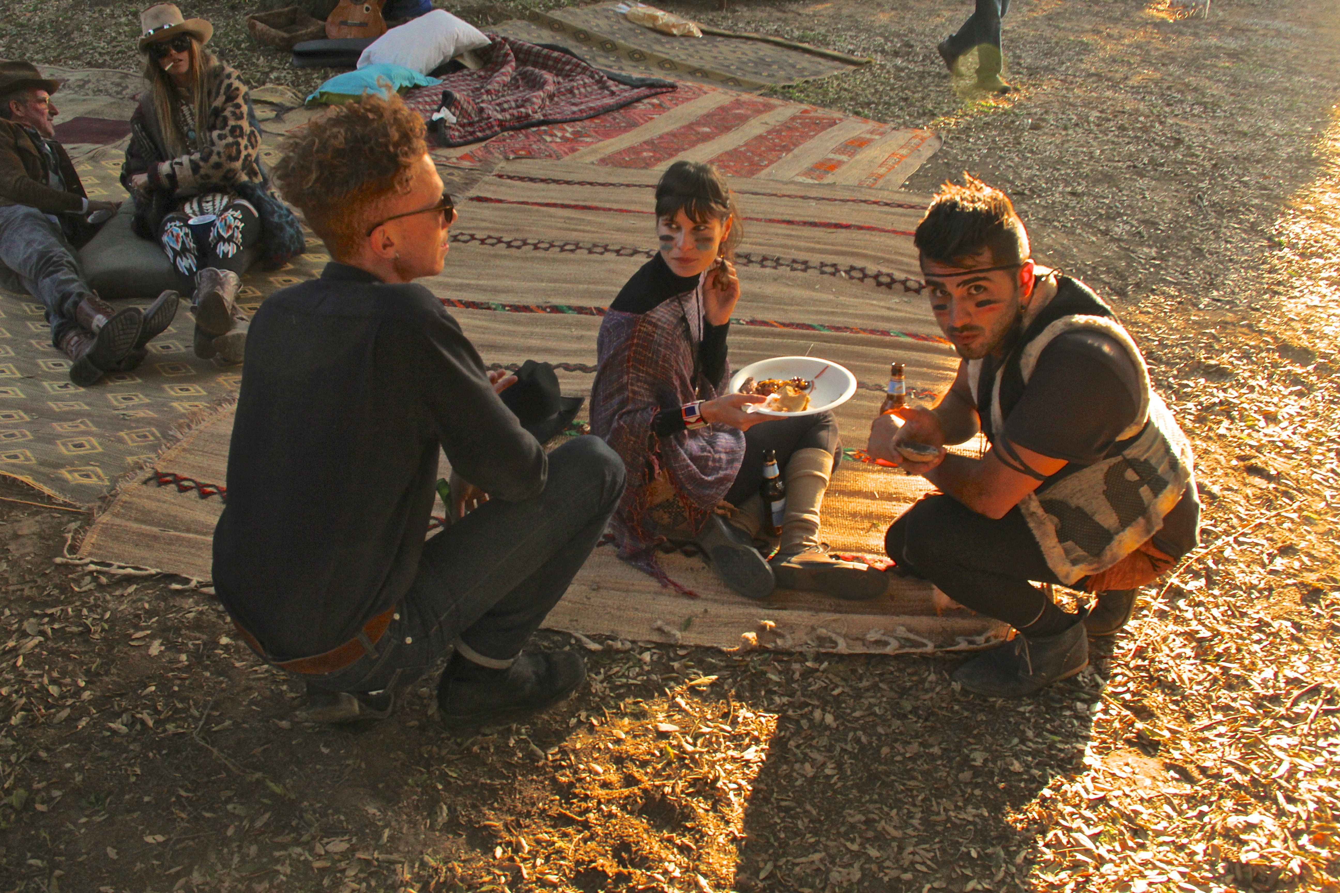 We cracked open a few beers and watched Emmanuelle, Sacha, and Arielle work hard setting up the festival and creating a comfortable vibe with rugs and pillows around the fireplace and cooking areas.
