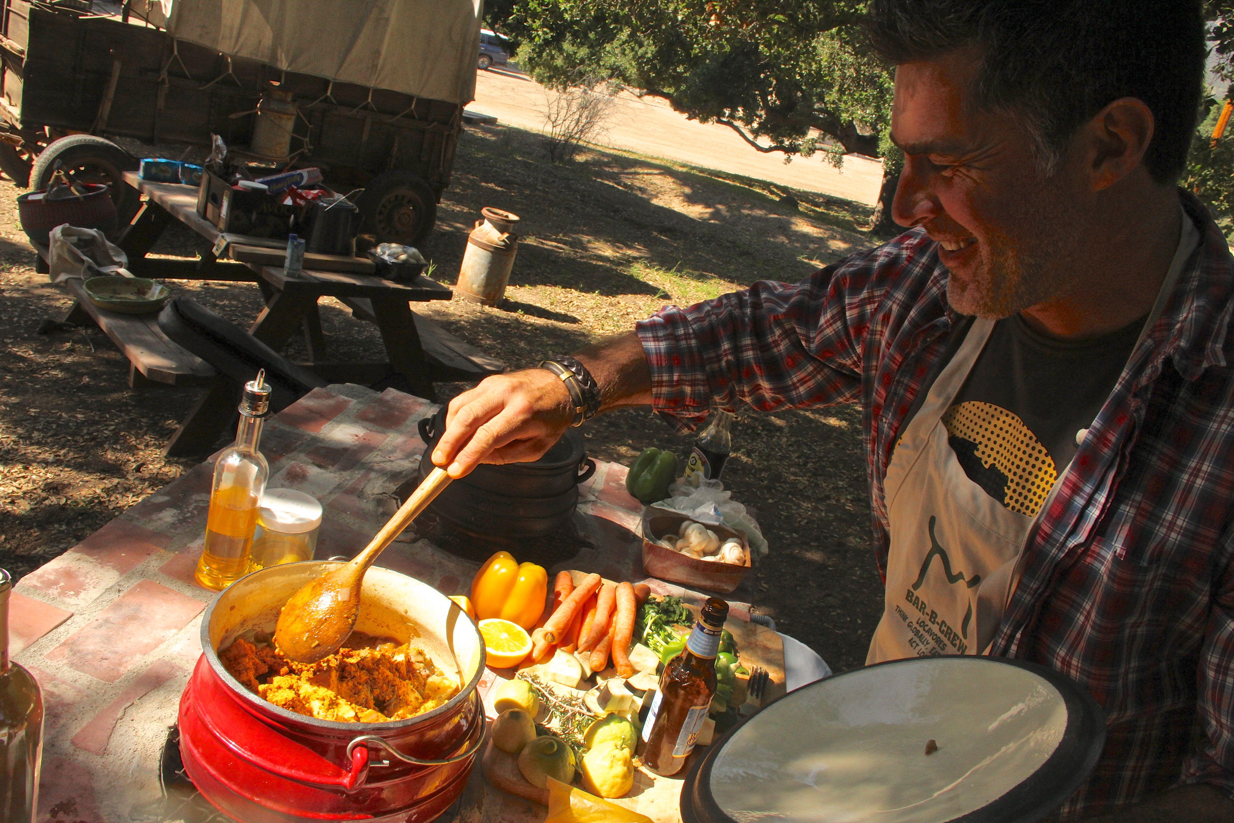 Showing up early allowed me to hang out with Patrick while he cooked up a curry lamb stew with spices from his homeland, South Africa, which brought an aroma of officialdom to the tribal area.