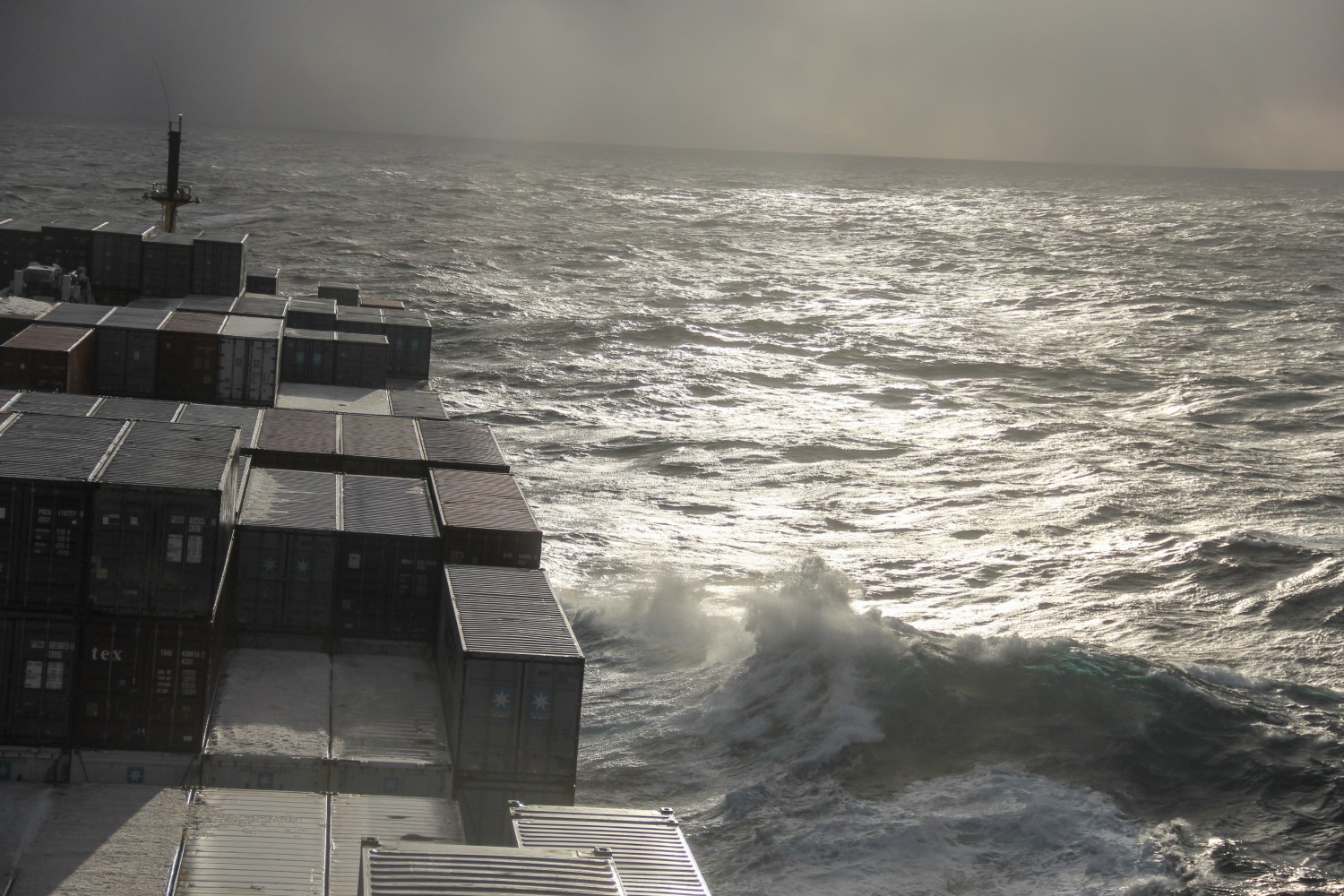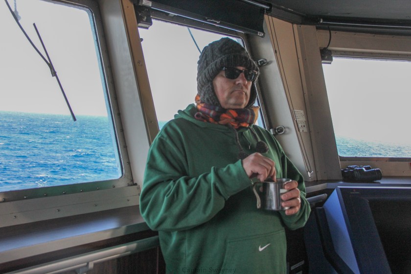 Southbound from Dutch Harbor to Seattle on the M.V. Horizon Kodiak. The forward mast is about 100 feet high.
