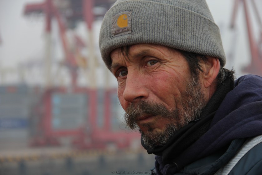 Able Seaman on the bow of a container ship arriving in Qingdao, China. M.V. Sea Land Comet.