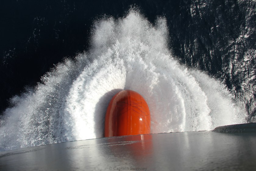 Bulbous Bow of the container ship M.V. Manulani underway in the Pacific Ocean. Matson Navigation Co.